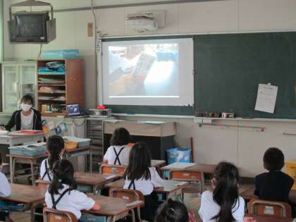 10月8日(木)の児童集会は集会委員会の児童らの映像による、クイズ「どの先生でしょう?」でした。先生の一部分が映り、映された先生が誰かを当てる3択クイズでした。映像の中に隠されたヒントをもとに考えていた児童もいました。
