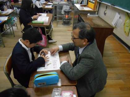 大阪珠算教会から講師の先生に来ていただき、3年生と4年生の算数の授業でそろばんの指導をしていただきました。15日と16日の2日間来ていただきました。初めての子どもも多く、みんな一生懸命に取り組んでいました。
