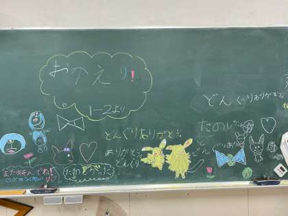 6年生の子どもたちはニコニコと黒板と手紙の文字を読んでいました。朝から教室がハッピーな空気に包まれました。