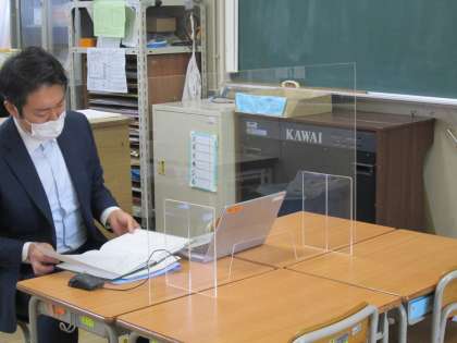 また、14日(月)〜17日(木)は2学期末個人懇談会です。各教室には、手指消毒用のアルコールとアクリルボードを設置して新型コロナウイルス感染症対策を施しています。マスク着用でお越しください。