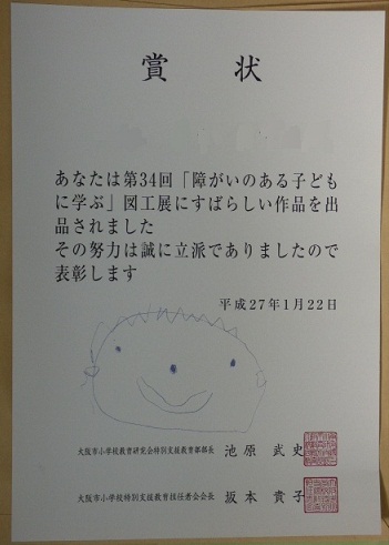 図工展に出品したなかよしの作品「不思議な海の仲間たち」と「キャップでジバニャンダニャン」の賞状が届き、全校朝会で校長先生から子どもたちに手渡されました。作品展でも展示していた作品ですので、たくさんの方にも観ていただけたことと思います。