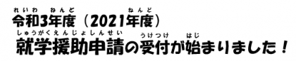 令和3(2021)年度 就学援助申請の受付が始まりました!