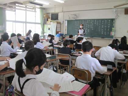 11:00〜11:30に登校した後、健康観察等をすませ、給食までの4時限目の時間には、各教室において、家庭での学習内容の確認や振り返り・プリントの答えあわせ・次の家庭学習の説明などを行っています。