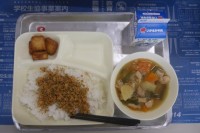 木川小学校では、子どもたちが食べやすいようにと給食調理員さんが真ん中に切れ目を入れてくれています。