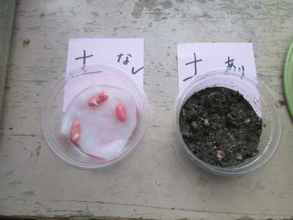5年生は1時間目からの学習が再開した5月20日(木)の理科で発芽の条件についての学習をしました。発芽に必要な条件は水?日光?空気?温度?土? 今、実験中です。月曜日には結果がわかるかも…