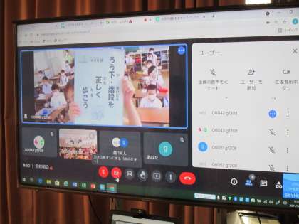 6月7日(月)全校朝会がありました。校長先生からは、【休み時間や体育の時間のマスクの着脱について】と【いじめのない居心地の良い学級をつくりましょう】という話がありました。また、今週の看護当番の先生からは6月の生活目標「廊下・階段を正しく歩こう」についての話がありました。