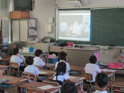 木曜日の朝は児童集会です。新型コロナウイルス感染症のため講堂や運動場などに全校児童が集まれないために、教室で視聴します。本日は集会委員会による給食クイズでした。