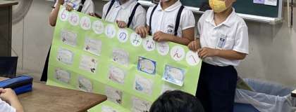 4月から毎日給食の準備や掃除のお手伝いに来てくれていた6年生へ「ありがとうのメッセージ」を書きました。みんなのメッセージを代表の子に渡してもらいました。大きな声で上手に台詞を言うことができ、終わった後は「どきどきした〜」と言って安心した様子でした。