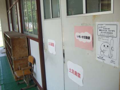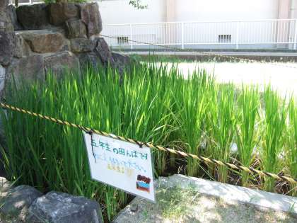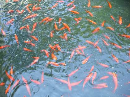 (いきいき教室はお盆休みになり、子どもが学校に来なくなりました。学校がひっそりしています。玄関の池の金魚は夏の暑さにも負けず元気です。