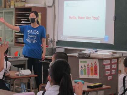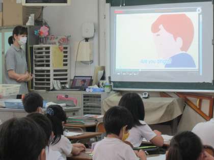以前も紹介しましたように、本校では火曜日、水曜日の8:40〜8:50までの10分間に、外国語(英語)・外国語(英語)活動のモジュールをしています。みんな集中して楽しそうに取り組んでいます。下の写真は2年、3年、4年の様子です。