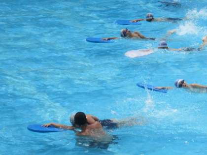 5年1組は本日の4時間目に水泳がありました。5年生はクロールを中心に学習しています。大きくゆったりとしたフォームで、長い距離を泳ぐことができるようになることをめあてとしています。晴天の下、クロールの「手のかき」や「息継ぎ」の練習をたくさんしました。