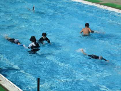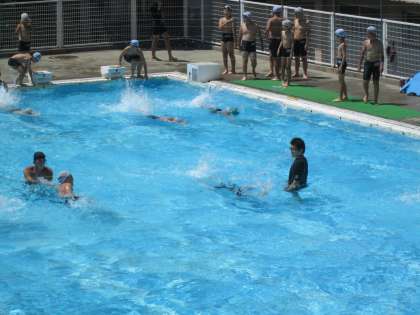 夏休み初日の7月21日は5,6年生のプール開放・図書館開放でした。数名の検温忘れや印鑑・保護者のサインなしの児童もいましたが、大きな混乱はなく、夏空の下で気持ちよさそうに水泳に取り組んでいました。