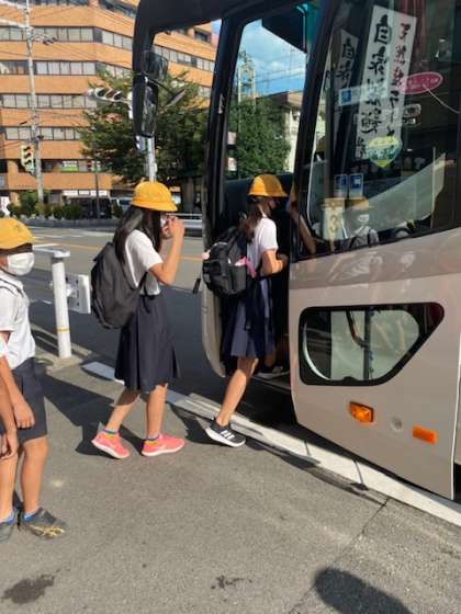 5年生より少し早く出発式を終え、バスに乗り込み鉢伏高原へ向けて出発しました。