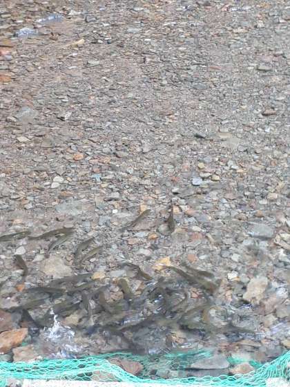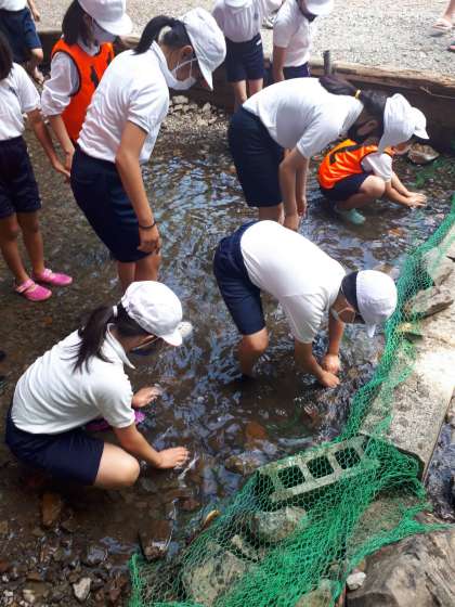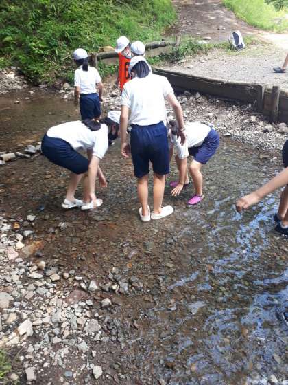 5年生の午後からの活動は、魚つかみです。