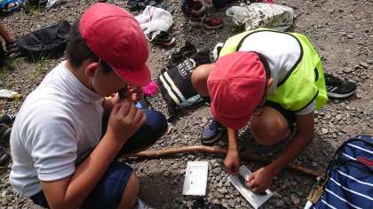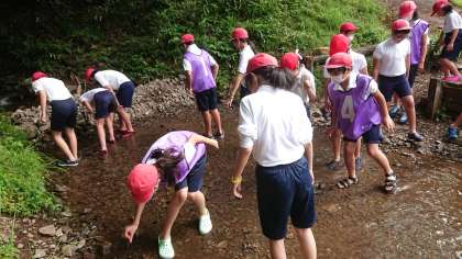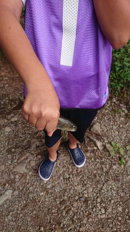 キャーキャー言いながら楽しそうに魚を追いかけています。
