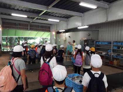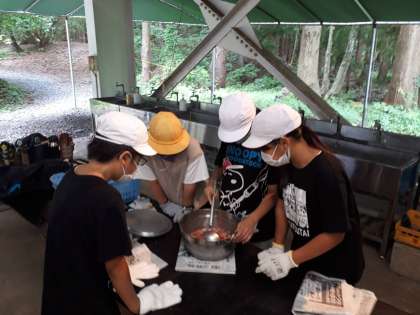 5年生は昼食のカレーを作っています。
