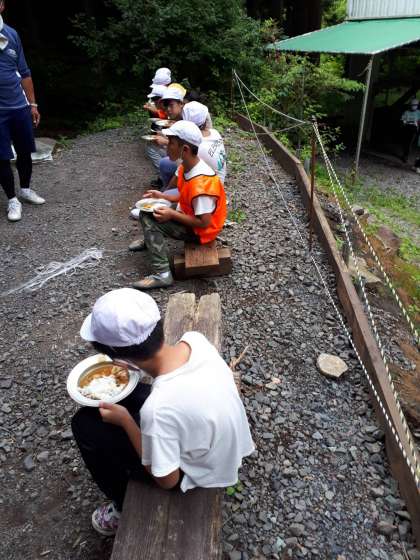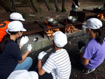 子どもたちは「火おこし」と「煮込み」を協力しておこないました。