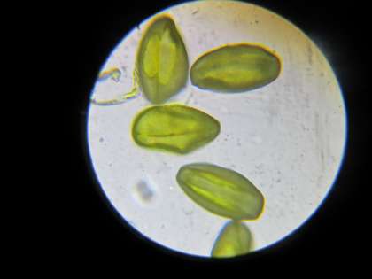 5年生は理科の「花から実へ」の学習でヘチマの花粉を顕微鏡で観察しました。