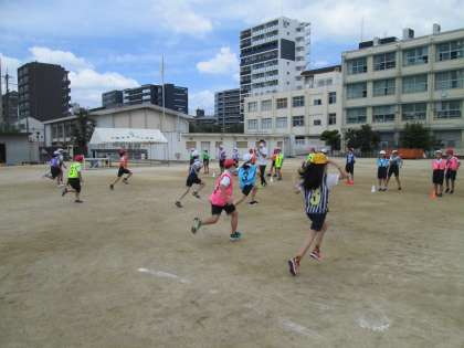 本日3時間目に5年生は出前授業(リレー)がありました。はじめに速く走るコツを教えてもらいました。そのあとリレーのバトンパスについて「走りながらバトンをもらう」「バトンを渡す人が声をかける」「バトンをもらう際は親指を下に向ける」などいろいろと教わりました。