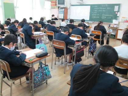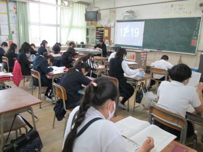 本日7日、明日8日の2日間、3〜6年生を対象とした大阪市経年調査があります。3,4年生は国語、社会、算数、理科の4教科、6年生は英語を加えた5教科です。1教科につき40分間取り組みます。本日は2時限目に国語、3時限目には社会に取り組みました。みんな真剣に取り組んでいました。