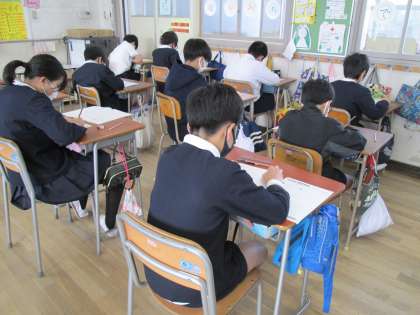 2時限目は算数、3時限目は理科、5・6年生のみ4時限目は英語に取り組みました。さらに、4学年とも20分程度かけて、生活や学習に関する質問紙にも回答しました。