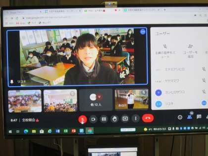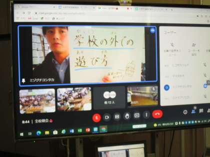本日は月曜日なのでリモートで全校朝会を行いました。校長先生からは2学期のまとめをしましょうということと、落とし物についての話がありました。生活指導の先生からは放課後の遊びについてのルールの話が、看護当番の先生からは靴のかかとを踏まずに正しく履きましょうという話がありました。