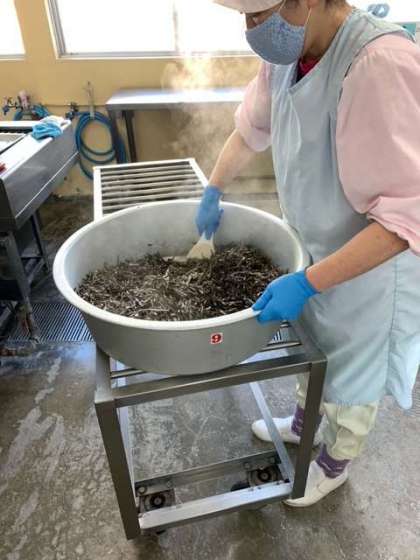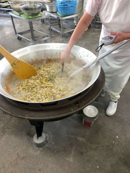 甘酸っぱく味付けをした後は、しっかりと火が通っているか温度も測定されていました。