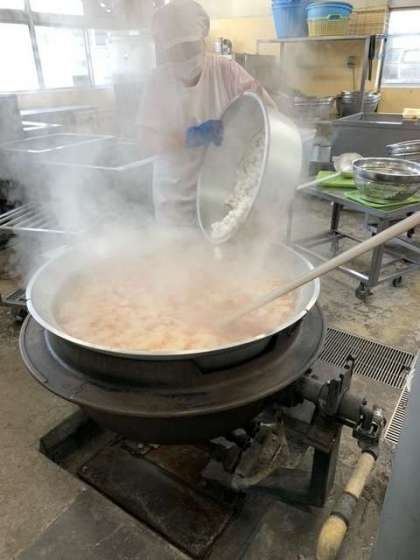 ちらしずしの具の横の釜では、ぞう煮です。