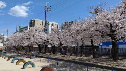 4月7日(木)に入学式があります。新1年生の入学をお祝いするように校庭の桜が満開です。