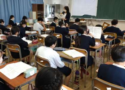6年生の学級開きの様子です。落ち着いて先生の話を聞いています。11日(月)から給食が始まります。