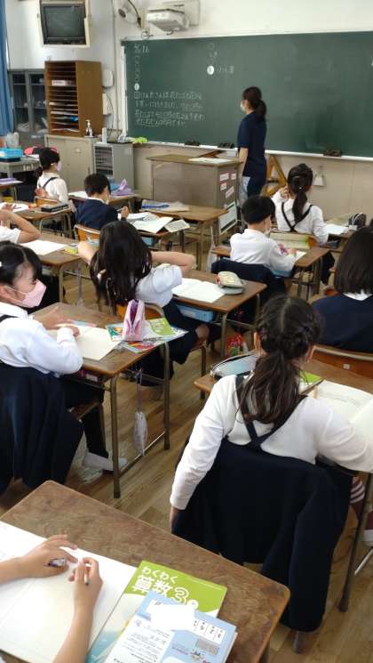 文章問題から見通しを立てて課題解決しています。見通しは算数の課題解決のための大切な学習段階です。どのような方法で解決するのかなどを考えた上で立式していきます。