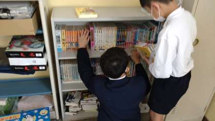 図書係の子どもたちが、学級・学年文庫の整理をしていました。みんなのために熱心に取り組んでいます。とても立派です。