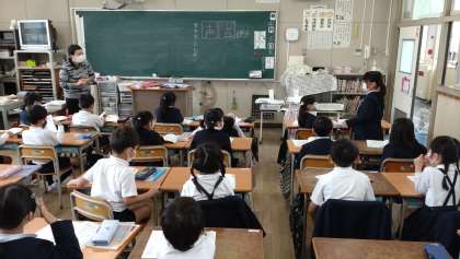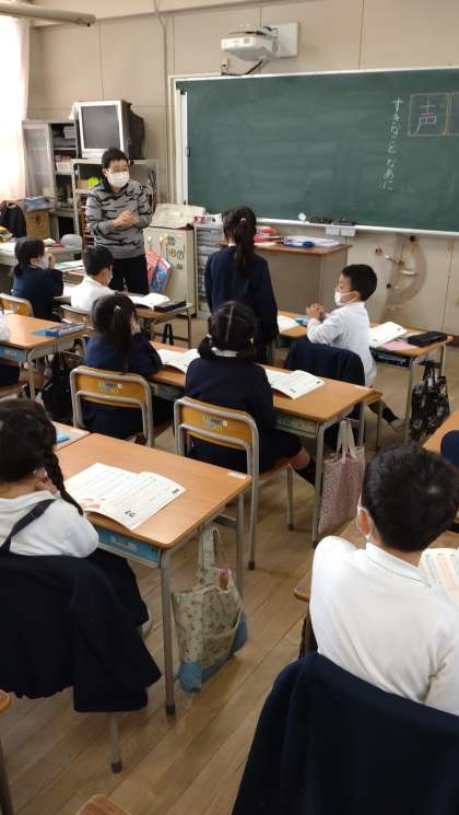 「すきなこと、なあに」の学習をしました。友だち同士、互いの話に関心を持ち,相手の発言を受けて、話をつなぐ学習です。教科書の対話例を読んだり、教師と代表の児童との対話を聞いたりして、話をつなぐ工夫について話し合いました。。