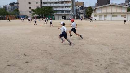 50メートル走に取り組みました。「しんどないですか?」と聞くと、子どもたちから、「しんどいけど、運動は楽しいです。」という返答がありました。楽しんで運動に取り組めることは、とても素晴らしいと思います。