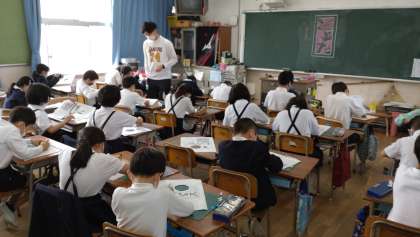 カッターを使って、名札づくりをしました。それぞれが工夫して、自分だけの名札をつくっています。