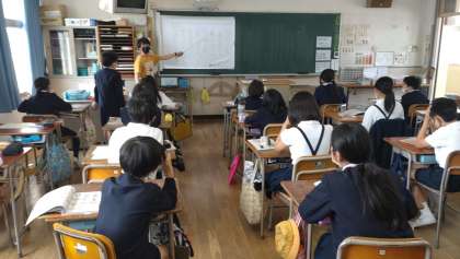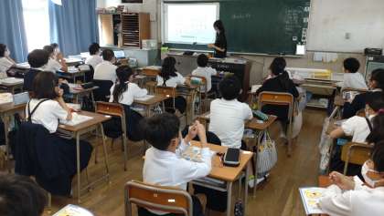 アルファベットを学習しました。アルファベットをはじめ、さまざまな場面の英語を聞き取る技能を身につける学習です。