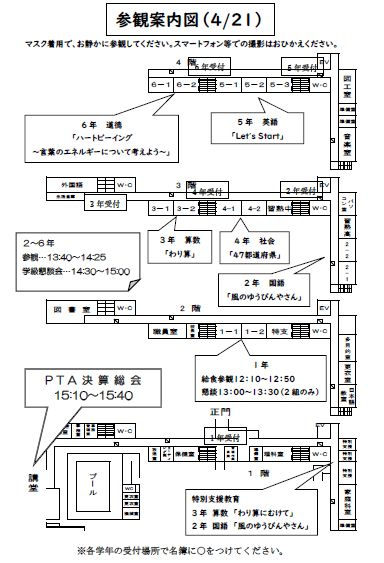 4月21日(木)本日の参観案内図を下記に掲載します。ご参照ください。