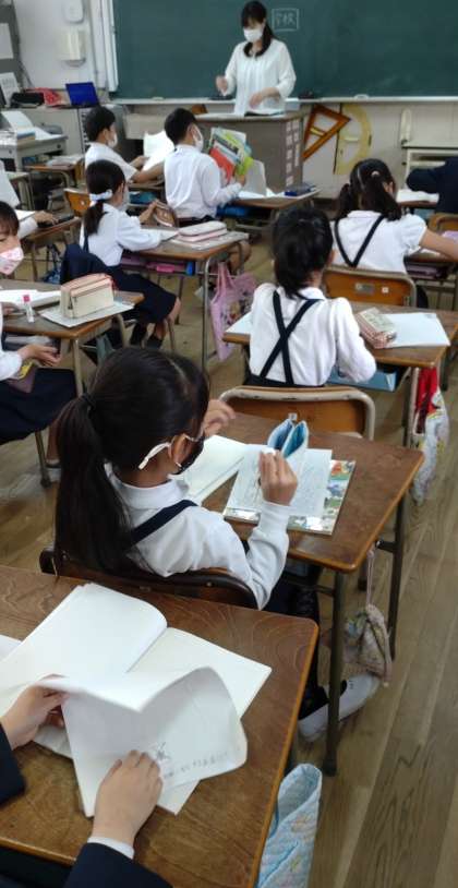 本日、午前中の子どもたちの授業の様子を紹介します。「大阪市のようすと人々のくらし」の学習をしました。この時間は、通学路の様子について地図を描いたり、話し合ったりしました。