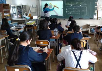 線対称な図形の性質について調べました。対応する2つの点を結ぶ直線は、対称の中心を通るなど、図形を構成する要素や図形間の関係に着目し、対称という観点で図形に対する見方を深めています。