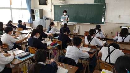 調理に必要な用具を調べました。はかりや軽量スプーン、なべ、フライパンなどの使い方やしまい方を学んでいます。