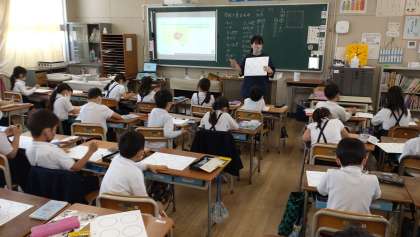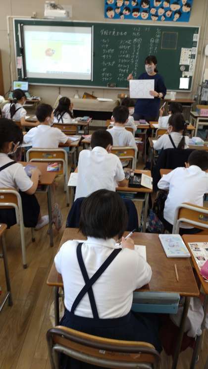 学校で見た生き物や植物などを発表しました。チューリップやカメ、ザリガニなど、子どもたちはたくさんのものを発見しています。