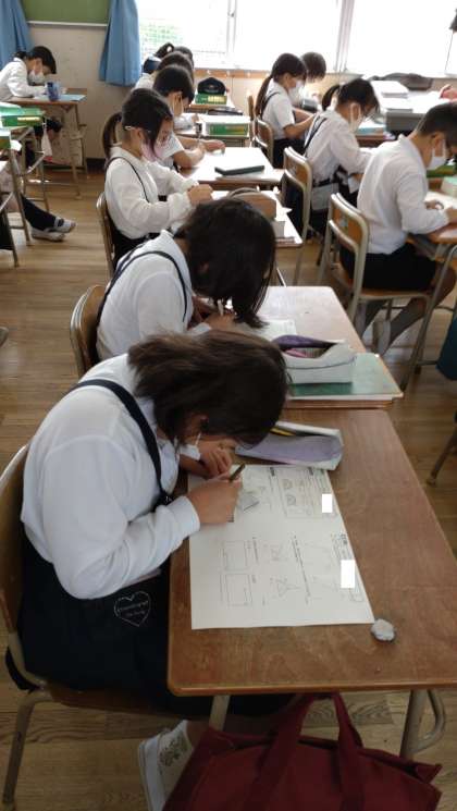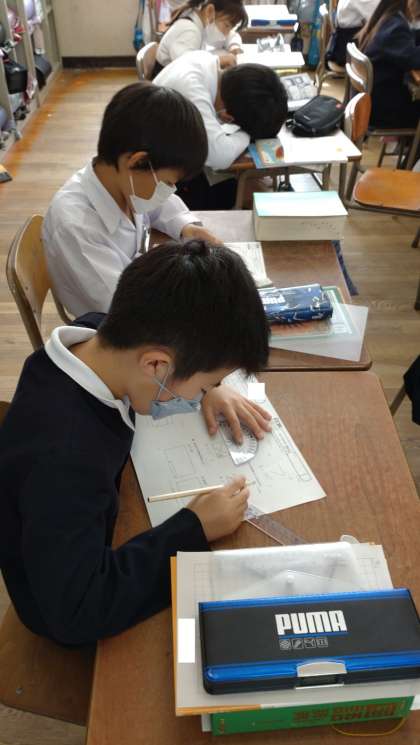 「角の大きさ」の学習のまとめをしました。分度器を用いて角の大きさを測定したり、必要な大きさの角をつくったりする課題に取り組んでいます。