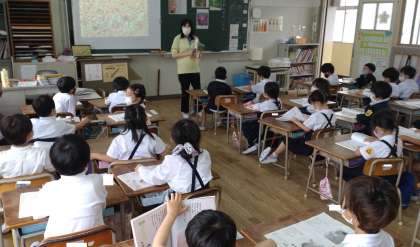 した命を感じ取るとともに、自分自身が元気でいられることを喜び、すべての生命あるものを大切にしようとする心情を育てる学習です。子どもたちは、自分の意見を積極的に発表していました。