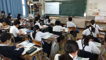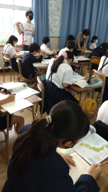 世界の国々と日本の位置や日本の国土の特色などを調べました。この単元の学習は、世界の大陸と主な海洋、主な国の位置、海洋に囲まれ多数の島からなる国土の構成などに着目して、我が国の国土の様子について考え表現することが目標です。