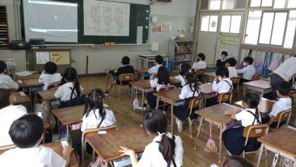 校歌の練習をしました。子どもたちは歌詞を一生懸命に覚えています。
