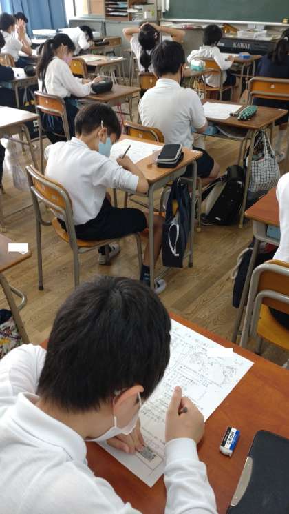 世界の国々と日本の位置や日本の国土の特色の課題に取り組んでいます。これまでに習ったことを振り返っています。
