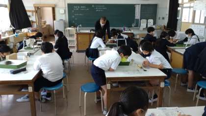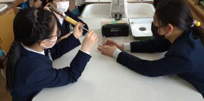 物の燃え方と空気の学習をしました。物が燃える前と物が燃えた後の空気の変化について、気体検知管で調べています。