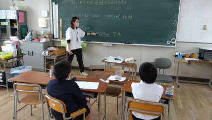 容積の学習をしました。入れ物の容積の求め方を考え、課題を解決しています。