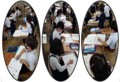 ひき算の学習をしました。42−9の課題を考えたり説明したりしています。(何十)−(1 位数)の暗算の仕方を学んでいきます。