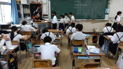 折れ線グラフの学習をしました。2つのことがらを表すグラフの学習課題や学習の振り返りで、教科書やドリルを活用した練習問題などに取り組んでいます。